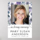 Este belo pôster pode ser personalizado com uma fotografia de seu ente querido, bem como seu nome, e pode ser exibido como uma placa de boas-vindas para a Celebração da Vida ou serviço funerário, ou na mesa do livro de visitas.