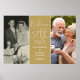 Uma elegante placa de boas-vindas de 50º aniversário de casamento com 2 fotos especiais e tipografia elegante em um fundo dourado. Criado por Thisisnotme©