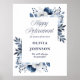 Esta elegante placa de boas-vindas de aposentadoria com flores azul-marinho e branco pode ser personalizada com suas informações em tipografia moderna. Desenhada por Thisisnotme©