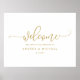Placa de Boas-Vindas de Casamento - Caligrafia Saltitante (Dourado): Dê as boas-vindas aos seus convidados com esta placa de boas-vindas moderna com caligrafia saltitante. Altere seus nomes e data na parte inferior. Você também pode alterar a cor do design clicando e escolhendo uma nova cor de preenchimento. Mova tudo ao redor...escolha um tamanho de pôster diferente.
