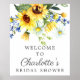Dê as boas-vindas aos seus convidados com nosso lindo pôster de boas-vindas de chuveiro de noiva com um lindo buquê floral de girassol amarelo aquarela