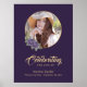 Elegante placa de boas-vindas de foto memorial/funeral roxa e dourada com uma moldura de foto dourada adornada com rosas de aquarela roxa e flores de respiro de bebê.