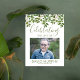 Placa de boas-vindas de funeral com folhagem verde em aquarela, uma foto de seu ente querido, seu nome e datas.