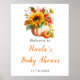 Placa de boas-vindas de churrasco de bebê rústico com um buquê de flores de abóbora de girassóis e folhagens. Perfeito para um churrasco de bebê no outono. As palavras podem ser alteradas para atender aos seus próprios detalhes ou requisitos