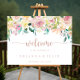 Este sinal de boas-vindas ao casamento floral de primavera de ouro rosa é perfeito para um casamento rústico. A design apresenta uma riqueza de peões coloridos e folhagem verde, lindamente amontoada em buquês charmosos, inspirando beleza natural. Faça esta poster com o nome da noiva e do noivo, e a data do casamento.