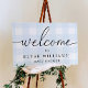 Esta placa de boas-vindas apresenta um design atemporal xadrez com um título de boas-vindas em caligrafia moderna. A placa pode ser personalizada para se adequar a qualquer evento.