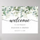 Adicione facilmente as informações do seu evento a esta linda placa de boas-vindas para casamento com verde de eucalipto em aquarela. Procure na loja por itens coordenados!