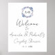 Fácil de personalizar com seus detalhes. Um simples e elegante sinal de boas-vindas com monograma em aquarela floral roxo e azul para chá de casal. Sinal de boas-vindas moderno boho para chá de casal editável, personalizável, fonte manuscrita caligráfica, simples, elegante.