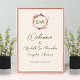 Um simples e elegante sinal de boas-vindas com monograma em rosa dourado e bege claro para chá de casal. Fácil de personalizar com seus detalhes. Sinal de boas-vindas moderno e boho para chá de casal editável, personalizável, fonte manuscrita caligrafada, simples, elegante.