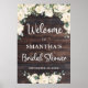 placa de boas-vindas para chá de panela em madeira rústica com folhagens pôster 24x36, Contate-me para itens combinando ou para personalização, Rosas Rosadas ©