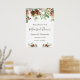 Sinal de Boas-vindas para Jantar de Ensaios da Folhagem de Inverno Elegante. Este design apresenta uma ilustração de ramos de pinheiro e pinhas com bagas vermelhas em estilo aquarela sobre fundo branco.