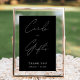 Elevem o vosso decor de casamento com o nosso Cartão de Caligrafia do Eterno Negro e o Sinal de Presentes. Este símbolo elegante e sofisticado é a adição perfeita ao seu dia especial, guiando os hóspedes sem problemas para deixar suas cartas e presentes na área designada. Com um modelo personalizável, você pode personalizar facilmente este sinal para corresponder ao seu estilo e tema de casamento. Quer você esteja planejando um casamento moderno ou tradicional, este sinal ajustado sem esforço em qualquer lugar, garantindo um olhar coeso e polido. Personalize com seus nomes para torná-lo exclusivamente seu. Não pare aqui! Procure o resto da nossa coleção para descobrir mais belos e personalizáveis sinais de casamento e itens de decoração. Crie uma experiência coesa e memorável para você e seus hóspedes com nossa excelente variedade de produtos personalizados.