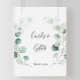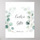 Esta placa de cartões e presentes de eucalipto verde de verão é perfeita para um casamento simples ou chá de noiva. O design apresenta belas folhas de eucalipto verde pintadas à mão em aquarela, inspirando charme natural.