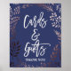 Este elegante letreiro de cartões e presentes em rosa dourado e azul marinho é perfeito para um casamento sofisticado ou chá de noiva. O design apresenta uma deslumbrante moldura de folhas cor de rosa em um fundo azul escuro e é combinado com uma fonte cursiva deslumbrante. A linha de texto na parte inferior do letreiro pode ser personalizada com a data, os nomes da noiva e do noivo, ou uma mensagem curta como "Obrigado".