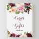 Esta placa de cartões e presentes florais de Borgonha com toque verde é perfeita para um casamento rústico ou chá de noiva. O design apresenta elegantes ramalhetes de flores desenhadas à mão em verde, rosa, roxo, vermelho e Borgonha, inspirando beleza natural. Torne a linha de texto na parte inferior da placa sua, incluindo a data, os nomes da noiva e do noivo ou uma mensagem curta como "Obrigado". Esta placa pode complementar um casamento, qualquer evento ou festa.