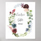 Esta placa de cartões e presentes florais e folhagens de Borgonha é perfeita para um casamento ou chá de noiva. O design boho elegante apresenta flores em tons de azul-marinho aquarela, rosa beije e vinho com detalhes a lápis artísticos. Torne a linha de texto na parte inferior da placa sua, incluindo a data, os nomes da noiva e do noivo ou uma mensagem curta como "Obrigado". Esta placa pode complementar um casamento, qualquer evento ou festa.