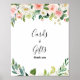 Esta placa de cartões e presentes florais elegantes com folhagem é perfeita para um casamento rústico ou chá de noiva. O design apresenta lindas rosas pintadas à mão em branco, rosa e rosa-claro e um toque de folhagem, inspirando beleza artística. Faça a linha de texto na parte inferior da placa sua, incluindo a data, os nomes da noiva e do noivo ou uma mensagem curta como "Obrigado". Esta placa pode complementar um casamento, qualquer evento ou festa.