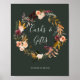 Este letreiro de cartões e presentes florais verde em burgundy laranja é perfeito para o seu casamento rústico boho com tons de rosa, verde escuro e dourado. O design apresenta uma coroa ou buquê de flores minimalistas em aquarela em tons de pêssego, rosa poeirento, roxo e rosa claro, juntamente com folhagens em cobre, verde perene, amarelo e ferrugem. As flores neste design são papoula, rosa e peônia. O design é ideal para um casamento simples e elegante no campo na primavera, verão ou outono. Por favor, encontre outros artigos de papelaria de casamento correspondentes e coordenados no restante desta coleção.