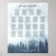 Esta bela tabela de 19 mesas de assentos de casamento apresenta um design rústico, mas elegante, com encosta nebulosa coberta de pinheiros azuis ou de pinheiros de montanha. O título diz "por favor, encontre sua mesa" na caligrafia de scripts antigos. Há espaço para os nomes do casal e da data do casamento. Este gráfico tem atribuições de mesa para 190 convidados - 10 pessoas por mesa.