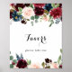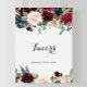 Esta placa de favores de caligrafia burgundy rústico de outono é perfeita para um casamento moderno ou chá de noiva. O design apresenta flores radiantes e graciosas pintadas à mão em burgundy, vermelho, azul-marinho, azul e rosa, inspirando beleza natural.