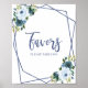 Poster Placa de Favores Florais em Aquarela Azul Empoeira