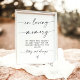 Esta Placa de Lembrança apresenta uma elegância minimalista para o seu casamento ou evento especial para homenagear aqueles que são verdadeiramente saudados. Edite facilmente a maioria das palavras para combinar com o seu estilo. As cores do texto e do fundo são totalmente editáveis —> clique no botão "Personalizar Mais" para editar!