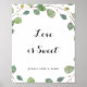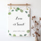 Esta placa de letra cursiva de eucalipto verde folhagem amor é doce é perfeita para um casamento rústico ou chá de noiva. O design apresenta ramos e folhas de eucalipto verde botânico desenhados à mão.