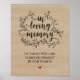 Poster Placa de Memorial de Casamento com Videiras Rústic