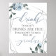 Flores em Azul Poeira para combinar com o tema do seu casamento, Placas engraçadas para o bar aberto na sua recepção - As bebidas desta noite são grátis, as histórias de amanhã não terão preço! . Rosas em aquarela, folhas e frutas em azul poeirento moderno e chique rodeiam uma moldura prateada em estilo geométrico de terrário com folhagens em verde salgueiro. Personalize o texto, o estilo da fonte, a cor e o tamanho. Arte original criada para a BarefootBride™ por © WhimsicalArtwork™ - Esta é parte de uma Suite Completa de Papelaria de Casamento com papelaria para casamento, chá de bebê e outros eventos.