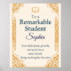 Honre um estudante notável com este cartão de parabéns elegante, projetado para professores, escolas e pais orgulhosos que querem celebrar a realização acadêmica de uma forma significativa e personalizada. Este cartão apresenta um fundo em estilo pergaminho refinado, bordas de ouro ornamentado e um ícone simbólico de livro — perfeito para reconhecer a dedicação, o crescimento e o espírito de um menino adolescente. A mensagem principal diz: "Para um Estudante Notável - Sua dedicação, crescimento e espírito realmente brilharam. Continue procurando pelas estrelas." 🎓 Personalize o cartão com o nome do seu aluno para criar uma guardiã duradoura que eles vão tesourar. Quer seja para um prêmio de fim de ano, graduação, ou uma celebração em sala de aula, este cartão é uma maneira sincera de dizer "Eu vejo seu esforço, e estou orgulhoso." A parte traseira do cartão inclui uma linha personalizável "De", pré-preenchida com De: Professor — totalmente editável pelo cliente para se adequar a qualquer remetente, seja ele um mentor, pai ou administrador escolar. Este design é adaptado para meninos adolescentes, mas pode ser facilmente personalizado para qualquer estudante. Basta clicar para editar o nome e a mensagem para corresponder à sua ocasião.