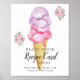 Sinal caprichoso de noivado / chá de panela com ilustração em aquarela de bolas de sorvete rosa e roxo em um cone de waffle e flores rosa. O texto diz "coloque seu cartão de receita aqui para a noiva usar ano após ano."
