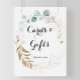 Este letreiro rústico de eucalipto dourado com flores para cartões e presentes é perfeito para um casamento simples ou chá de noiva. Este design artístico apresenta flores douradas desenhadas à mão e folhagem verde de eucalipto em aquarela, lindamente dispostas em uma moldura geométrica elegante.