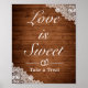O amor é doce, pegue um presente placa de casamento. Estilo rústico com fundo de tábuas de madeira e decoração de renda branca. Mais itens estão disponíveis neste estilo em nossa loja. Você pode editar o design ainda mais, alterar cores, fontes e adicionar texto extra clicando no link "personalizar ainda mais".
