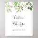 Esta placa de texto personalizado floral marrom simples de eucalipto é perfeita para um casamento moderno ou chá de noiva. O design apresenta belas folhas verdes de eucalipto pintadas à mão artisticamente dispostas em formas geométricas, inspirando beleza natural.