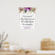 Flores alagadiças púrpuras Ametistas com folhas verdes e sotaques dourados com sotaque "Venha como você é; fique o máximo que puder; Somos todos da família aqui; Portanto, nenhum plano de assentos" - personalize com seu próprio nome. Se você quiser esta design em outros cartazes de casamento, por favor me envie um e-mail para shutterbug600@yahoo.com.