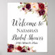 Poster Placa Floral Boho Borgonha - Placa de Boas-vindas