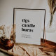 Esta placa memorial moderna preta esta vela queima é perfeita para um casamento simples. O design minimalista preto e branco apresenta uma fonte retrô e contemporânea com um toque rústico boêmio único. Perfeito para qualquer estação. Deixe minimalista, como está, ou adicione seus próprios gráficos e obras de arte.