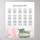 Esta tabela de assentos de casamento apresenta uma bela rosa rosa pincelada, refletindo em água com ondas e ondulações. O título diz "por favor, encontre sua mesa" na elegante caligrafia do roteiro de lacy. Há espaço para os nomes do casal e da data do casamento. Este gráfico tem atribuições de mesa para 150 convidados em 15 mesas - 10 pessoas por mesa.