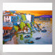 De uma pintura original em acrílicas, de Yvonne Ayoub, mostrando uma colorida cidade de Skiathos, área de Plakes.
