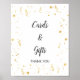 Este cartão de chuveiro de bebê de celebração em ouro e presente é perfeito para um chuveiro de bebê sofisticado para um menino ou menina. O design moderno apresenta decorações em ouro falso em um fundo branco com caligrafia cinza escura elegante. Este sinal pode ser usado para um chuveiro de bebê, chuveiro de noiva, aniversário ou qualquer evento ou festa.
