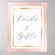 Deixe que seus convidados saibam onde deixar seus cartões e presentes com esta placa de cartões e presentes de casamento em rosa e dourado. Personalize facilmente online. Itens combinantes disponíveis para complementar este letreiro moderno com uma fonte elegante.