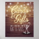 Mesa de presente de casamento / Cartões e Ofertas Sinais de Decoração de Casamento Modelos - Letras Douradas Elegantes, Óculos de Champanhe Vintage e Luzes de Corda no Fundo da Madeira Rústica. Um Design Perfeito Para O Seu Grande Dia! Todo Estilo De Texto, Cores, Tamanhos Podem Ser Modificados Para Ajustado Das Suas Necessidades.