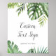 Este sinal de texto personalizado de palmeira tropical selvagem é perfeito para um casamento na praia ou em um destino. O design apresenta uma variedade exótica de folhas de bananeira, samambaias, folhagens, plantas botânicas e verde em aquarela para um clima tropical de verão. Personalize o texto para dizer o que você quiser! Este sinal pode ser usado para cartões e presentes, livro de visitas, hashtag de casamento, lembranças, barra de sobremesas - qualquer coisa! Pode ser usado para um casamento, chá de noiva, jantar de ensaio ou qualquer evento. A linha de texto na parte inferior do sinal pode ser personalizada com a data, os nomes da noiva e do noivo, ou uma mensagem curta como "Obrigado". Se você quiser vários sinais coordenados, personalize e adicione ao carrinho um de cada vez.