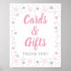O Sinal de Placas e Presentes de inverno apresenta um design de floco de neve rosa e prateado brilhante. Perfeito para um chá de fraldas de inverno ou aniversário.
