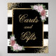 Cartões de noiva e negros e cartazes de presentes que apresentam flores escamoteadas e dentro de ouro verde contra um fundo listrado preto e branco adornado com confete dourado. Itens correspondentes disponíveis.