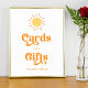 Comemore sua chá de fraldas com este legal cartaz, que apresenta um belo sol-boho, a tipografia retrô e o texto personalizado de sua escolha.