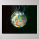 Placas Tectônicas do Planeta Terra. Planeta Terra Cartoon com placas tectônicas queimadas liberando fuligem na atmosfera.