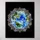 um trabalho de arte decorativo que apresenta a terra do planeta sobre uma mandala branca e fundo preto como impressão de poster decoração.