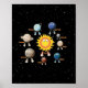 Ilustrações coloridas dos oito planetas e do Sistema Solar. Cada planeta é representado como um personagem divertido e fofo. O tema do universo espacial design mostrando o Sol no meio e os planetas Mercúrio, Vênus, Terra, Marte, Júpiter, Saturno, Urano e Netuno ao seu redor. Um design de espaço exterior fofo para crianças, crianças, bebês, amantes do espaço, rapazes e raparigas. Esta representação astronômica que representa a galáxia, estrelas e planetas é perfeita para um presente de aniversário, decoração infantil, arte infantil, decoração domiciliar, presente de Natal ou presente para qualquer outra ocasião especial.