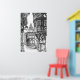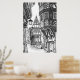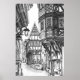 Desenho de caneta e tinta de uma rua com casas medievais e meio cercadas. Um motivo histórico, perfeito para pessoas que gostam de tudo medieval.